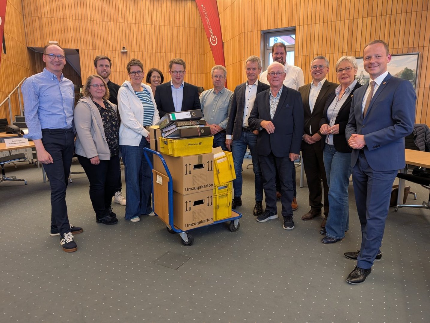 Kreiswahlleiter Dr. Linus Tepe freute sich über die landesweit höchste Wahlbeteiligung von 65,59 % bei der Kreistagswahl und bedankte sich bei allen Wahlhelferinnen und Wahlhelfern sowie bei den Mitarbeiterinnen und Mitarbeitern in den Verwaltungen für die geleistete Arbeit.