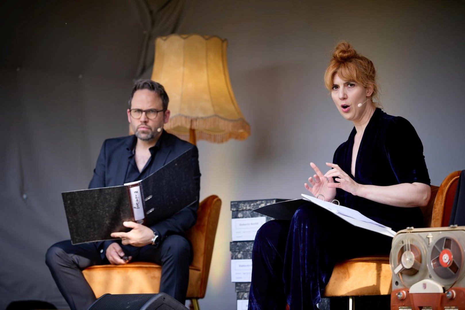 Hörbuch- und Fernsehsprecherin Sarah Giese mit Moderator und Autor Christoph Tiemann (Bildquelle: Münsterland e.V.)
