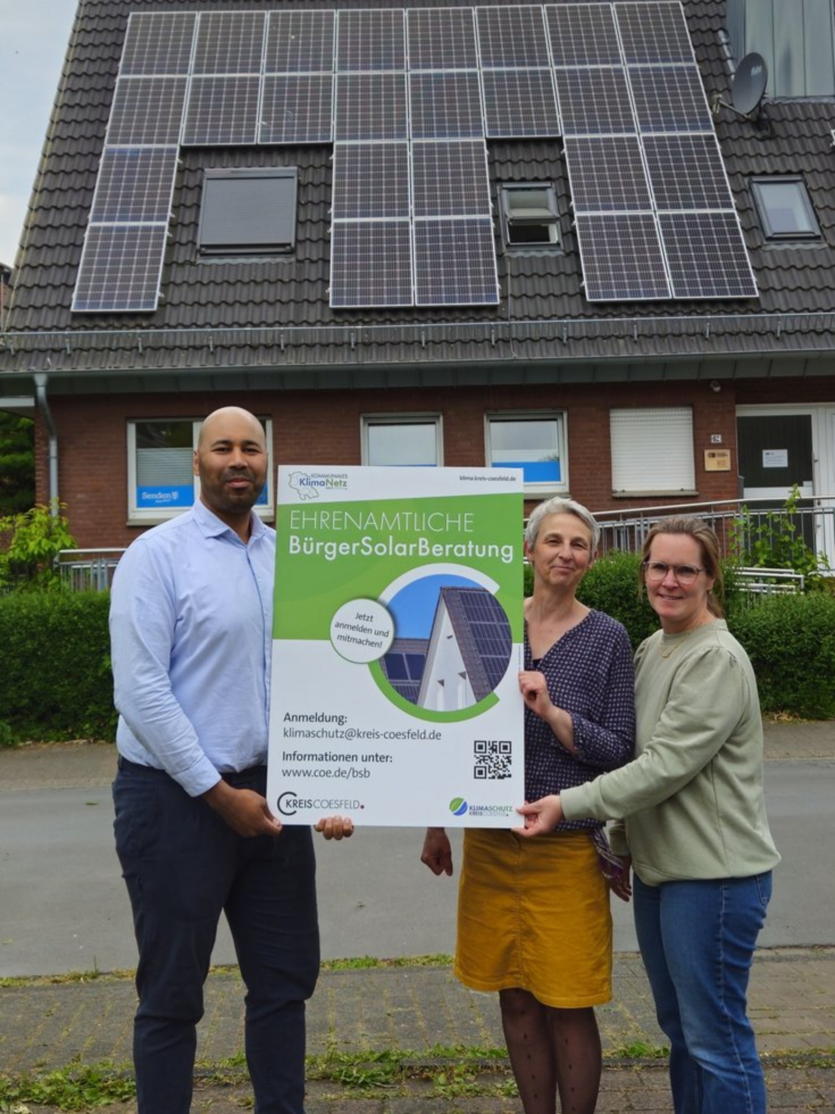 Vielfach benötigen Hauseigentümerinnen und Hauseigentümer mehr Informationen, wenn Sie in Erwägung ziehen, Solarstrom auf dem eigenen Dach zu produzieren. Um kostengünstige und kurze Wege aufzuzeigen, initiieren die Klimaschutzmanagerinnen und –manager im Kreis Coesfeld daher eine „BürgerSolarBeratung“: Interessierte Bürgerinnen und Bürger werden auf Kosten des Kreises und der Kommunen zu "Solarberatern geschult und können sich anschließend selbst organisieren und ehrenamtlich arbeiten.