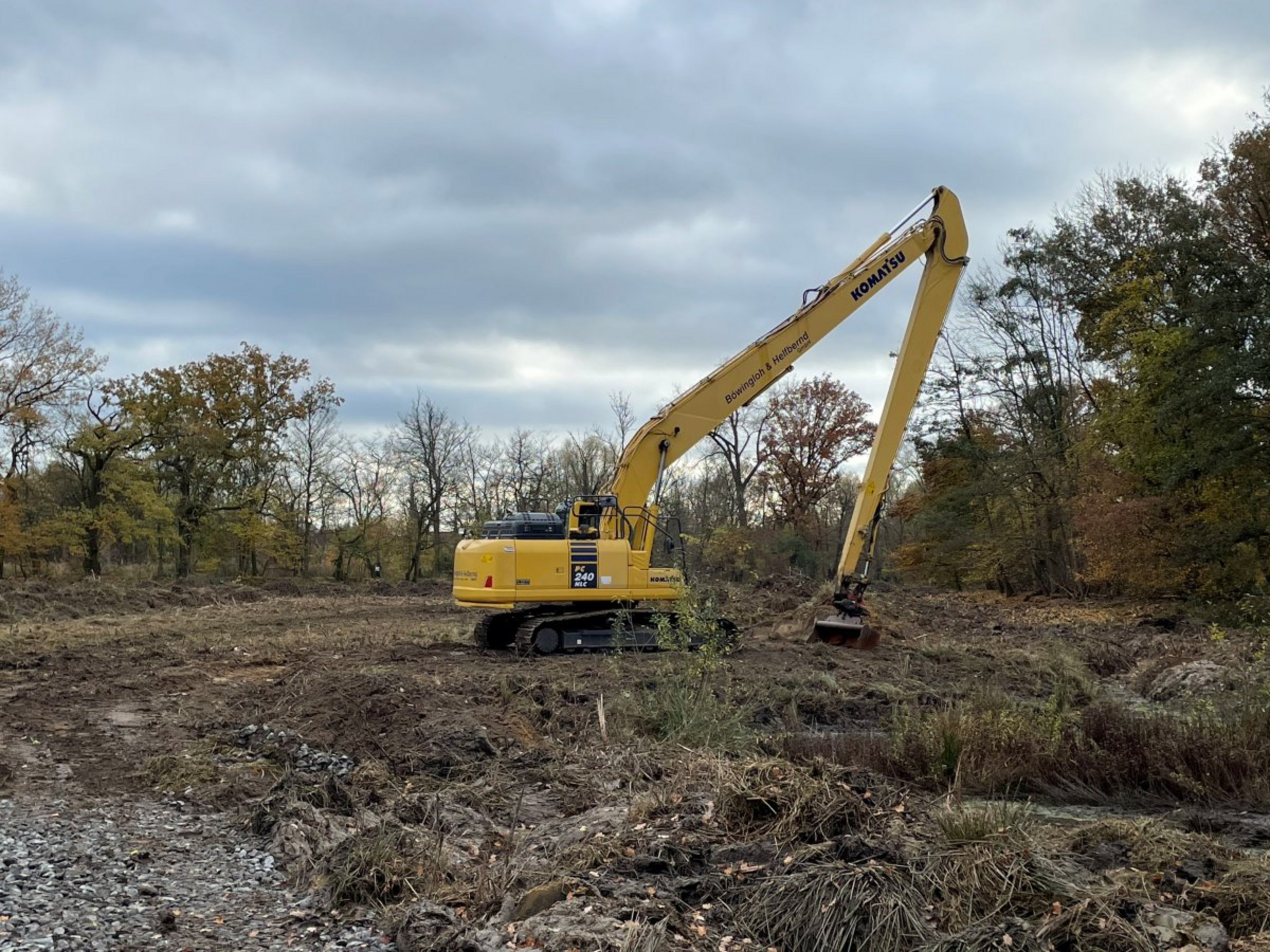 Kreis CoesfeldDer Langarmbagger hat am 18. November seine Arbeit aufgenommen und beginnt mit der Modellierung der neuen Gewässersohle.