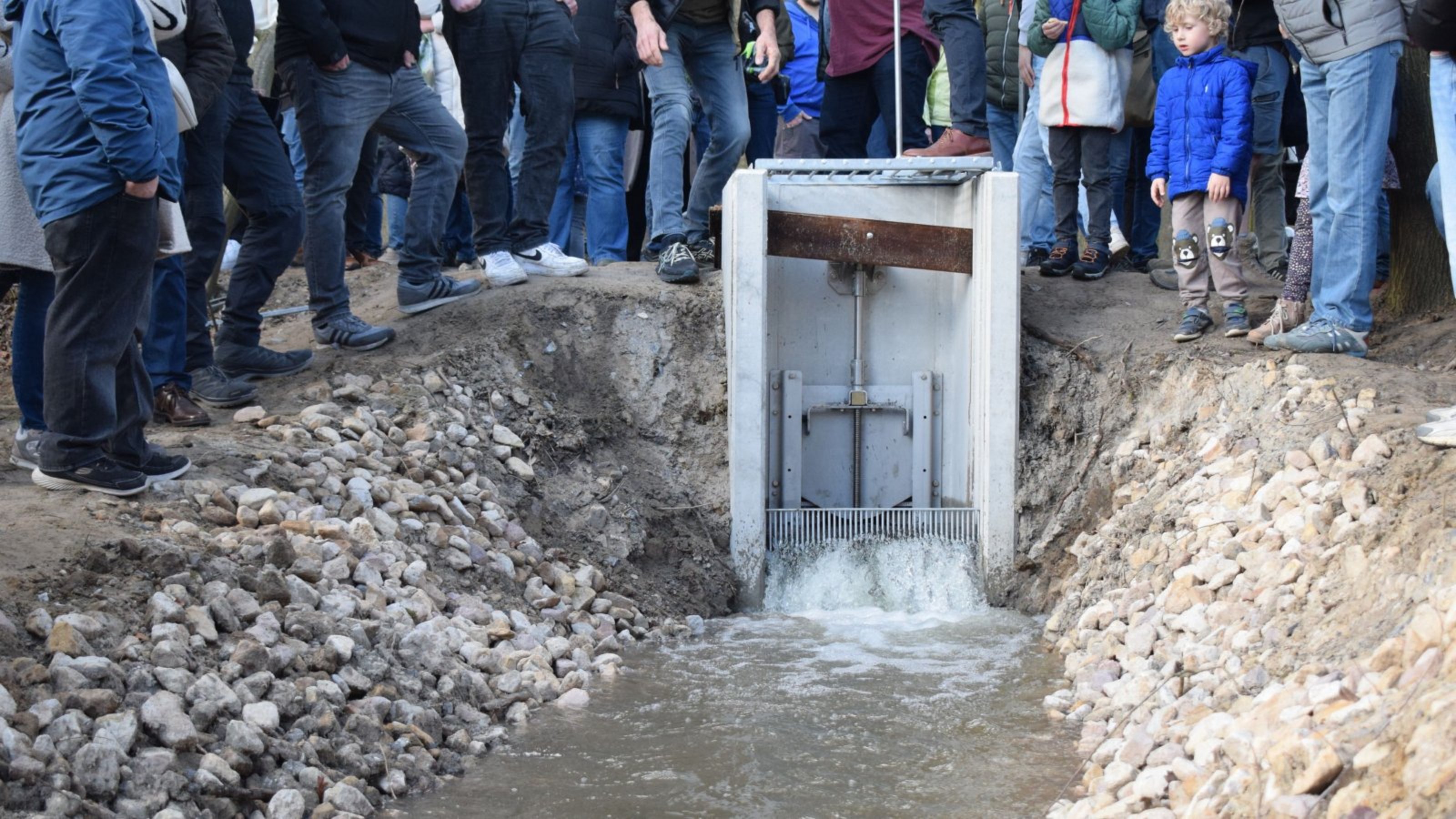 Kreis Coesfeld - Tobias KoenigAm 1. März 2026 war es endlich so weit: Der Schieber zwischen Vischeringstever und Außengräfte wurde vom Erbdrosten zu Vischering und dem Landrat Dr. Schulze Pellengahr geöffnet und das Wasser konnte endlich einströmen.