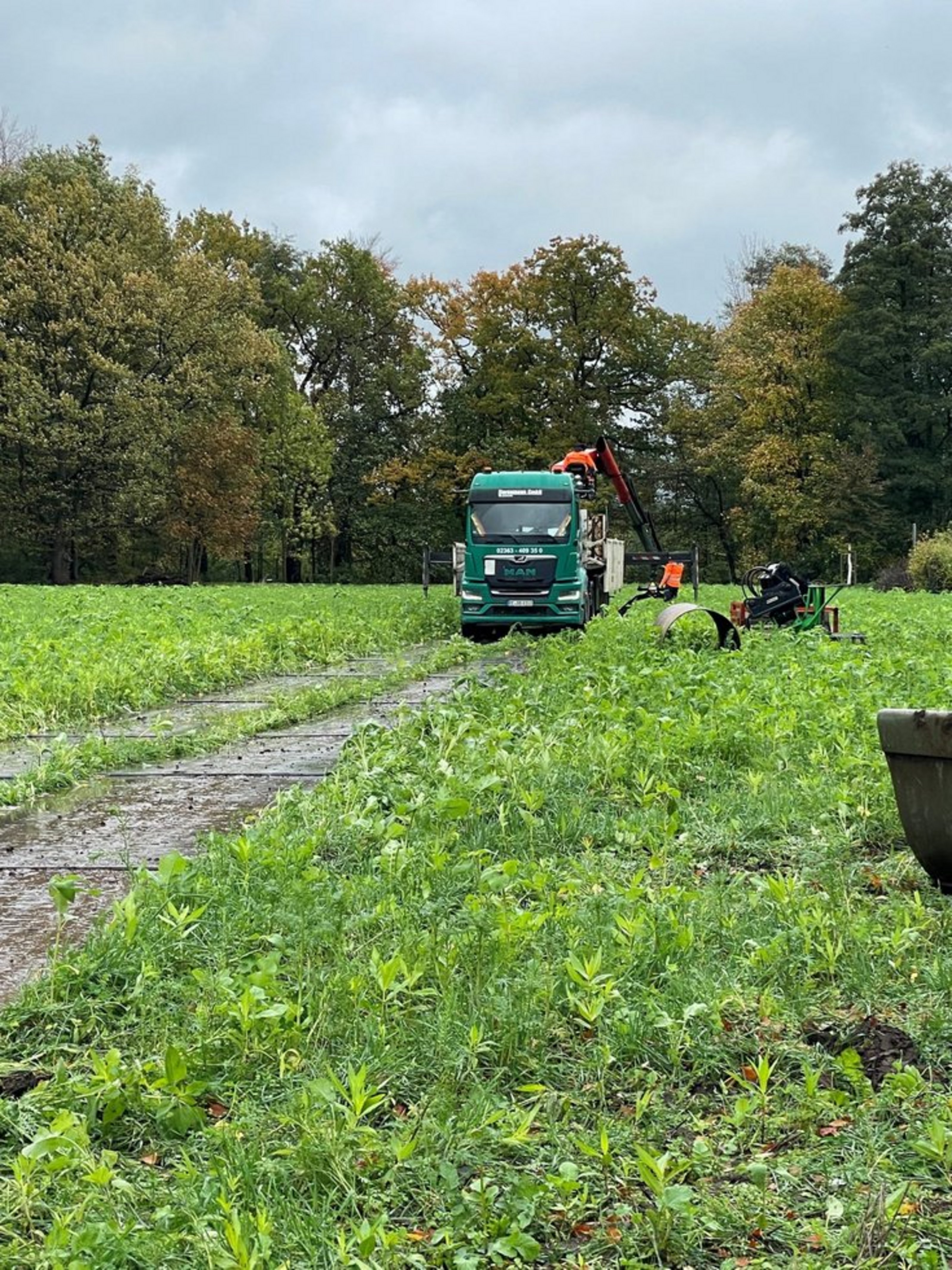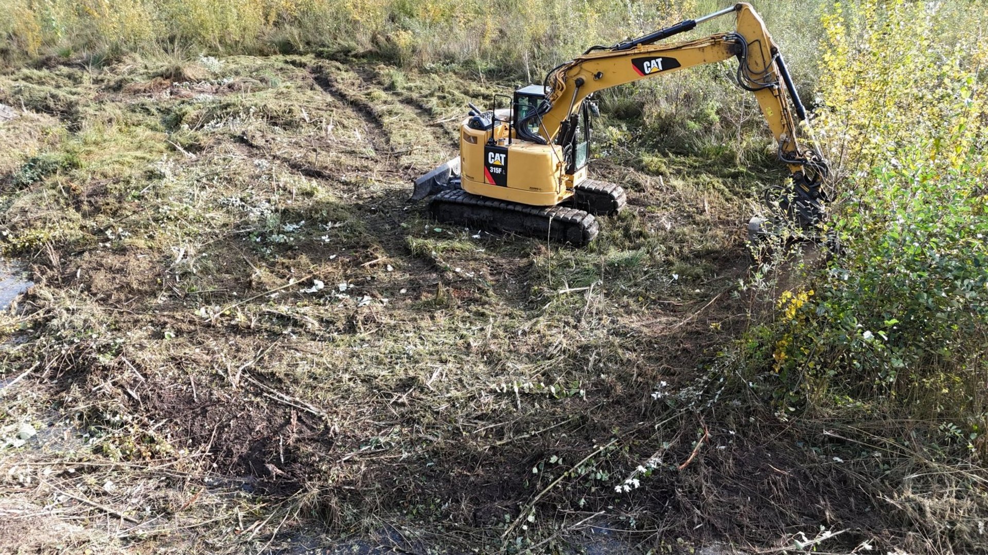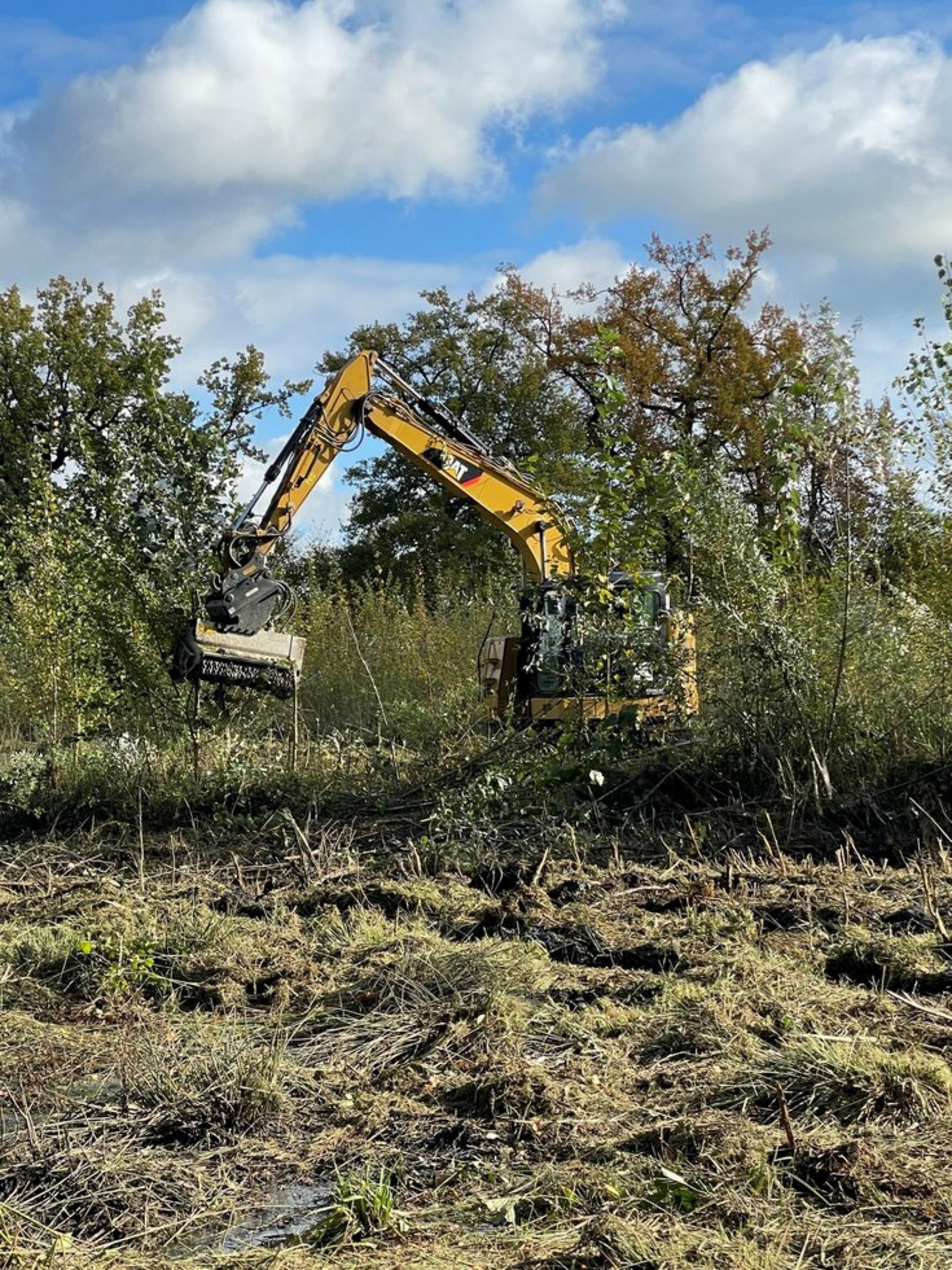 ![]()  Copyright Informationen für Abbildung ©Kreis CoesfeldSeit Donnerstag 30.10.2025 ist der Bagger dann endlich in der Außengräfte angekommen und mulcht den Aufwuchs herunter. Das organische Material wird in der kommenden Woche abgefahren und kompostiert.