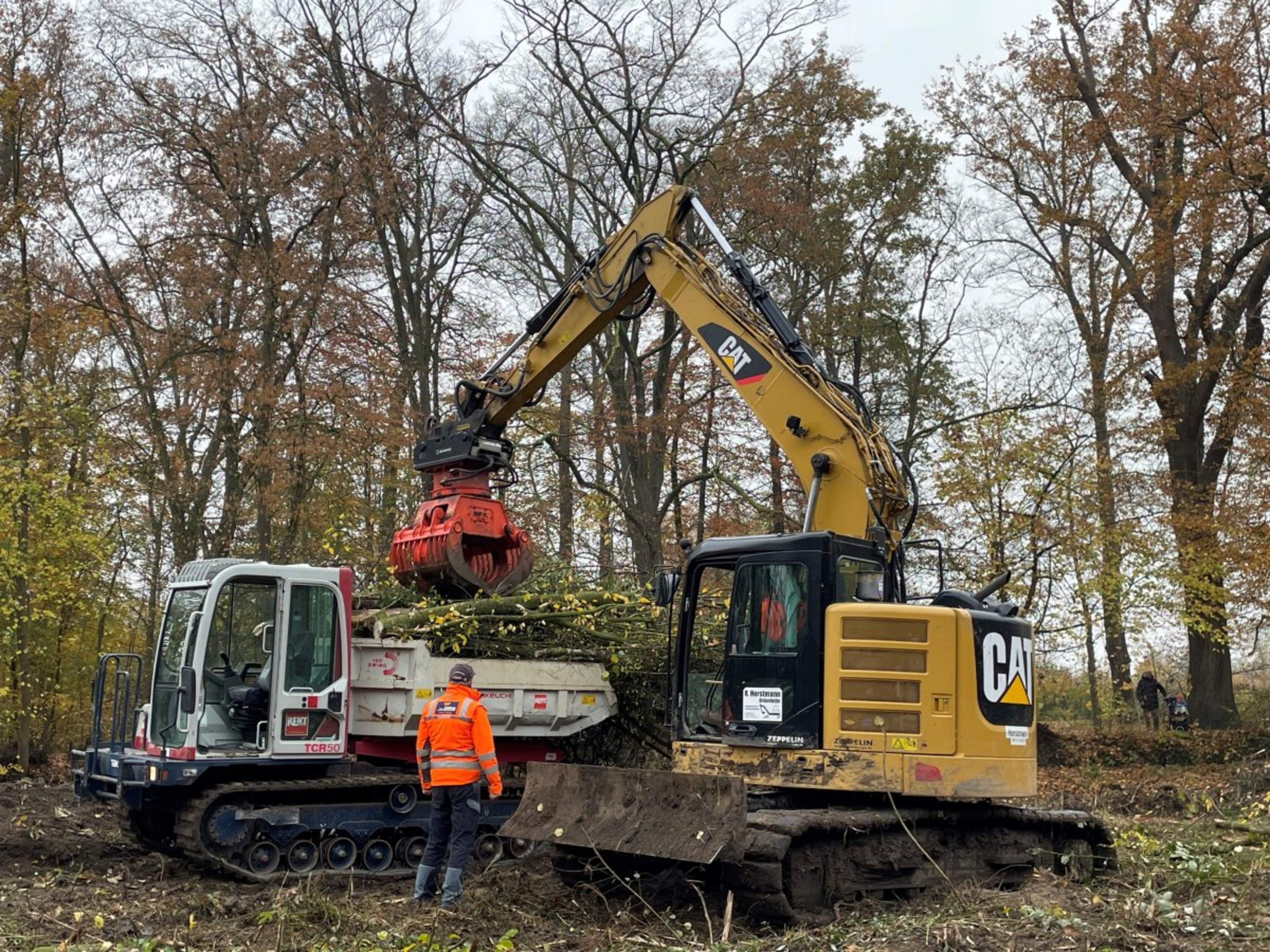 Kreis CoesfeldSeit Donnerstag, 30.10.2025 ist der Bagger dann endlich in der Außengräfte angekommen und mulcht den Aufwuchs herunter. Das organische Material wird in der kommenden Woche abgefahren und kompostiert.