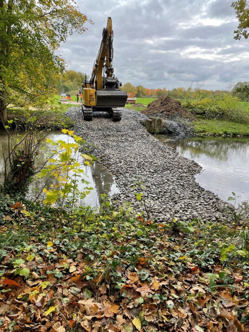 ![]()  Copyright Informationen für Abbildung ©Kreis CoesfeldUm in die Außengräfte zu gelangen wurde eine temporäre Brücke errichtet. Dazu wurden zwei Rohre mit 140 cm und zwei mit 80 cm Durchmesser verlegt und aufgeschottert.